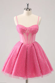 Vestido de cóctel con corsé, tirantes finos y lentejuelas, corte A
