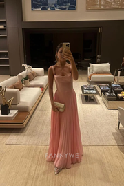 Vestido largo formal de dama de honor, vestido de noche, vestido de fiesta, vestido de fiesta, vestido rosa con tirantes finos en forma de A