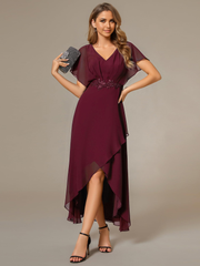 Vestido de noche formal con escote en V y apliques hasta la rodilla con corte A y cuello en V para fiesta de graduación