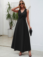 Vestido de noche formal sin mangas con escote en V y corte A para fiesta