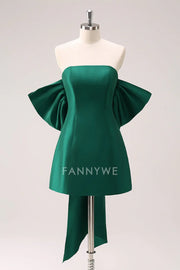 FannyWe Elegante Vestido de Fiesta Corto sin Tirantes Verde Oscuro con Lazo y Corte A - Vestidos Formales