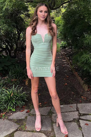Vestido mini elegante verde salvia con muescas y fruncido para el regreso a casa de FannyWe, vestidos formales