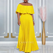 FannyWe Vestidos de quinceañera sencillos de corte A, vestido elegante para boda, para invitados de boda, largo hasta el suelo, manga corta, hombros descubiertos, poliéster, sin espalda y con pliegues
