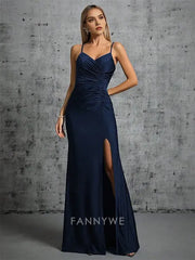 FannyWe Vestidos de quinceañera sencillos de sirena/trompeta Vestido elegante Vestido formal de boda Largo hasta el suelo Sin mangas Tirantes finos Satén Sin espalda con abertura fruncida - EE. UU. 2 / Reino Unido 6 / UE 32