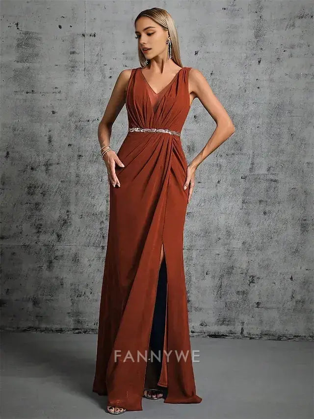 FannyWe - Vestidos de quinceañera sencillos de sirena/trompeta, elegantes, formales, para boda, largos hasta el suelo, sin mangas, cuello en V, satén con cuentas