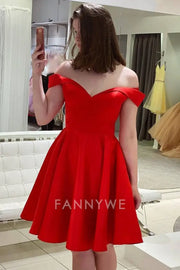 Vestido de fiesta de satén rojo con hombros descubiertos sencillo de FannyWe vestidos formales