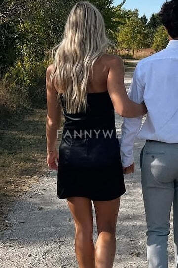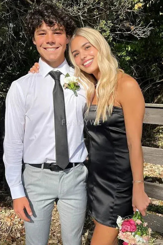 FannyWe Vestido de fiesta ajustado sin mangas de satén con escote redondo y sencillo sin tirantes, vestidos formales
