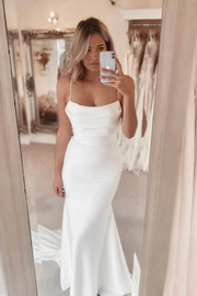 Vestidos de novia de corte sirena con tirantes finos y escote redondo