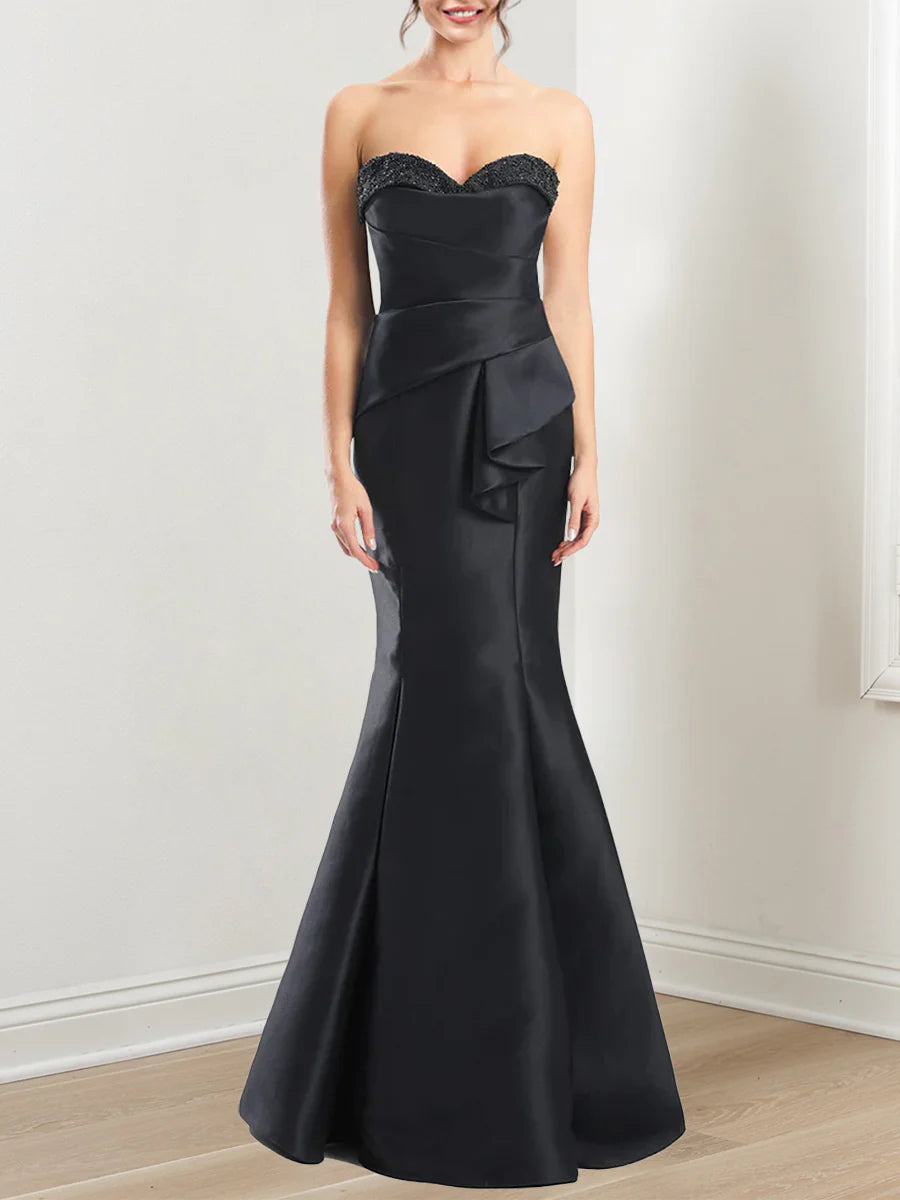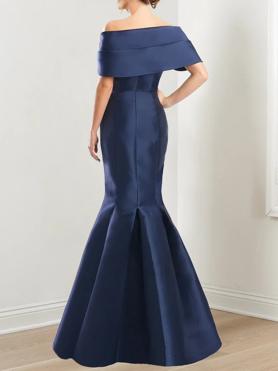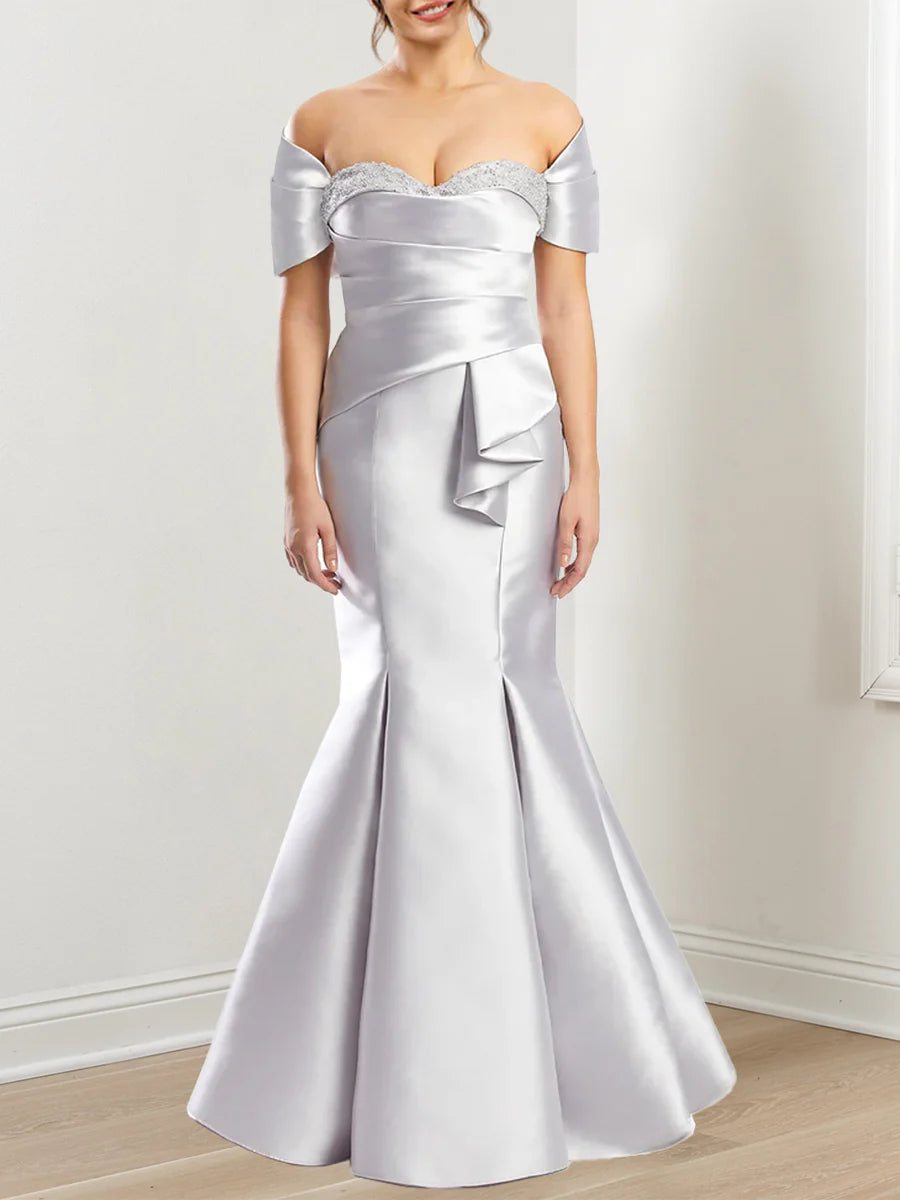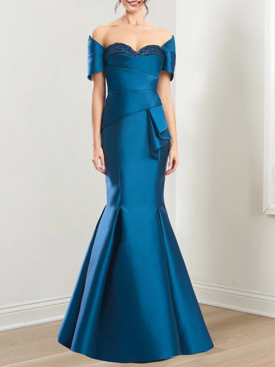 Vestidos de madre de la novia con mangas cortas y corte sirena sin tirantes