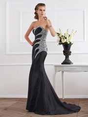 Vestidos de sirena de tafetán sin tirantes, sin mangas, con cola larga y cuentas