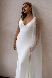 Vestidos de novia largos de satén elegantes con escote en V y cola de sirena