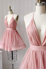 Vestido de fiesta rosa con escote en V profundo y corte A
