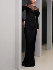 Vestido de madre de la novia con corte tubo/columna, elegante, escote redondo, largo hasta el suelo, satén, encaje, manga larga con lazo(s).