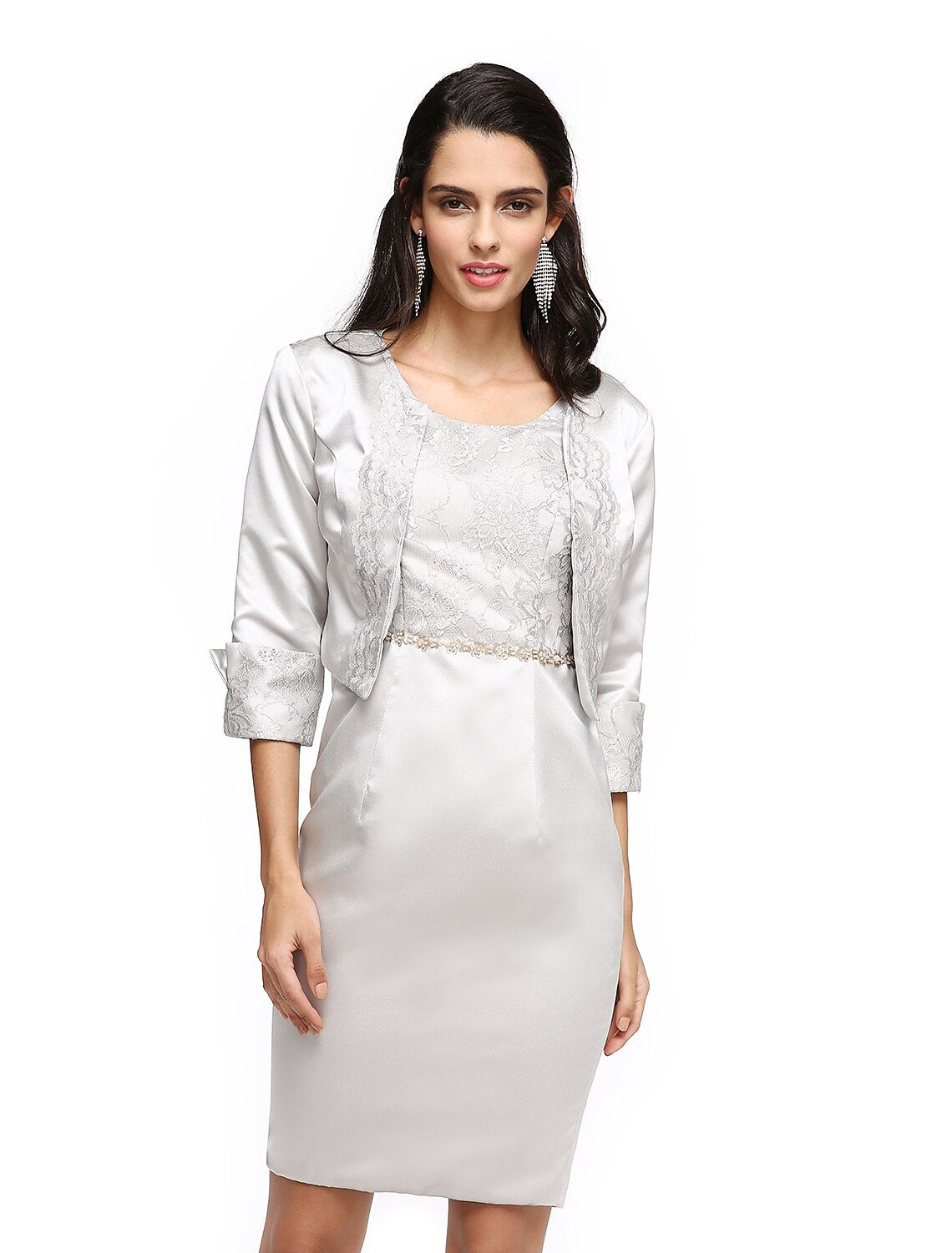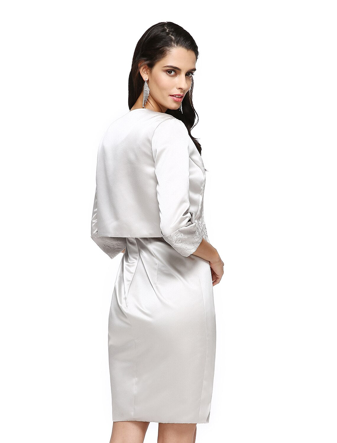 Vestido de Madre de la Novia de Dos Piezas con Escote Joya, Corto/Mini, Satén, Media Manga, Sin Pliegues - EE. UU. 2 / Reino Unido 6 / UE 32
