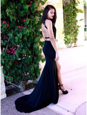 Vestido de fiesta de corte tubo/columna, vestido de fiesta de cumpleaños, cola de corte, sin mangas, cuello halter, encaje, espalda descubierta con abertura, color puro