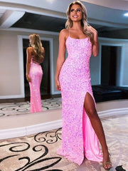 Vestidos de terciopelo con lentejuelas, tirantes finos, sin mangas y con cola larga