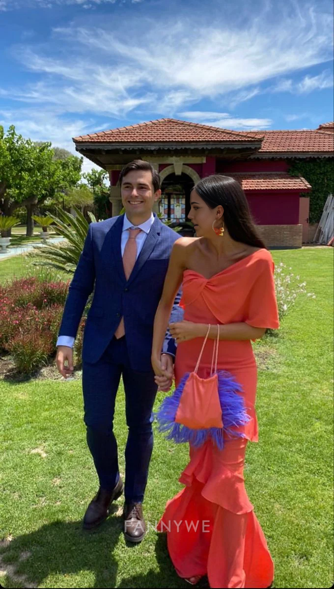Vestido largo formal elegante de un solo hombro con volantes, vestido de dama de honor, vestido de noche, vestido de fiesta