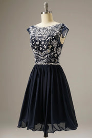 Vestido de fiesta corto con mangas cortas y cuentas - Negro / EE. UU. 2 / Reino Unido 6 / UE 32