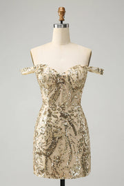 Vestido de fiesta ajustado con hombros descubiertos y lentejuelas