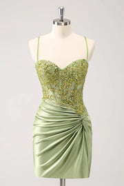 Vestido de fiesta plisado con apliques en la espalda y cordones brillantes