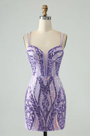 Vestido de fiesta único con corsé y tirantes finos brillantes y lentejuelas - EE. UU. 2 / Reino Unido 6 / UE 32 / Morado oscuro