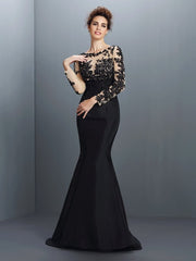 Vestidos de madre de la novia de tafetán largo con apliques y mangas largas y corte sirena/trompeta