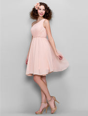Vestido de dama de honor de gasa con corte A/vestido de baile, un hombro hasta la rodilla, con faja/cinta/drapeado lateral - Como en la imagen 1