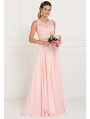 Vestido de dama de honor de corte A, cuello joya, sin mangas, elegante, largo hasta el suelo, cola de tul con encaje, faja y cinta.