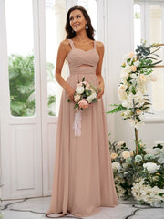Vestidos de dama de honor de corte A/princesa, de gasa, con tirantes fruncidos, sin mangas y hasta el suelo