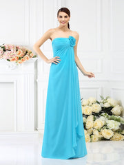 Vestidos de dama de honor largos de gasa sin mangas, corte A/princesa, sin tirantes, con flores hechas a mano