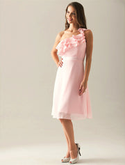 Vestido de dama de honor de un solo hombro sin mangas elegante hasta la rodilla de gasa con drapeado lateral - EE. UU. 2 / Reino Unido 6 / UE 32