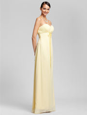 Vestido de dama de honor sin tirantes, sin mangas, elegante, largo hasta el suelo, de gasa con lazo - EE. UU. 2 / Reino Unido 6 / UE 32