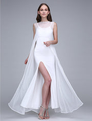 Vestido de dama de honor de corte tubo/columna, cuello barco, sin mangas, espalda abierta, largo hasta los tobillos, de gasa/jersey con abertura frontal