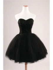 Vestido de fiesta de cóctel, vestido de graduación, largo hasta la rodilla, sin mangas, escote corazón, tul con pliegues y abalorios.