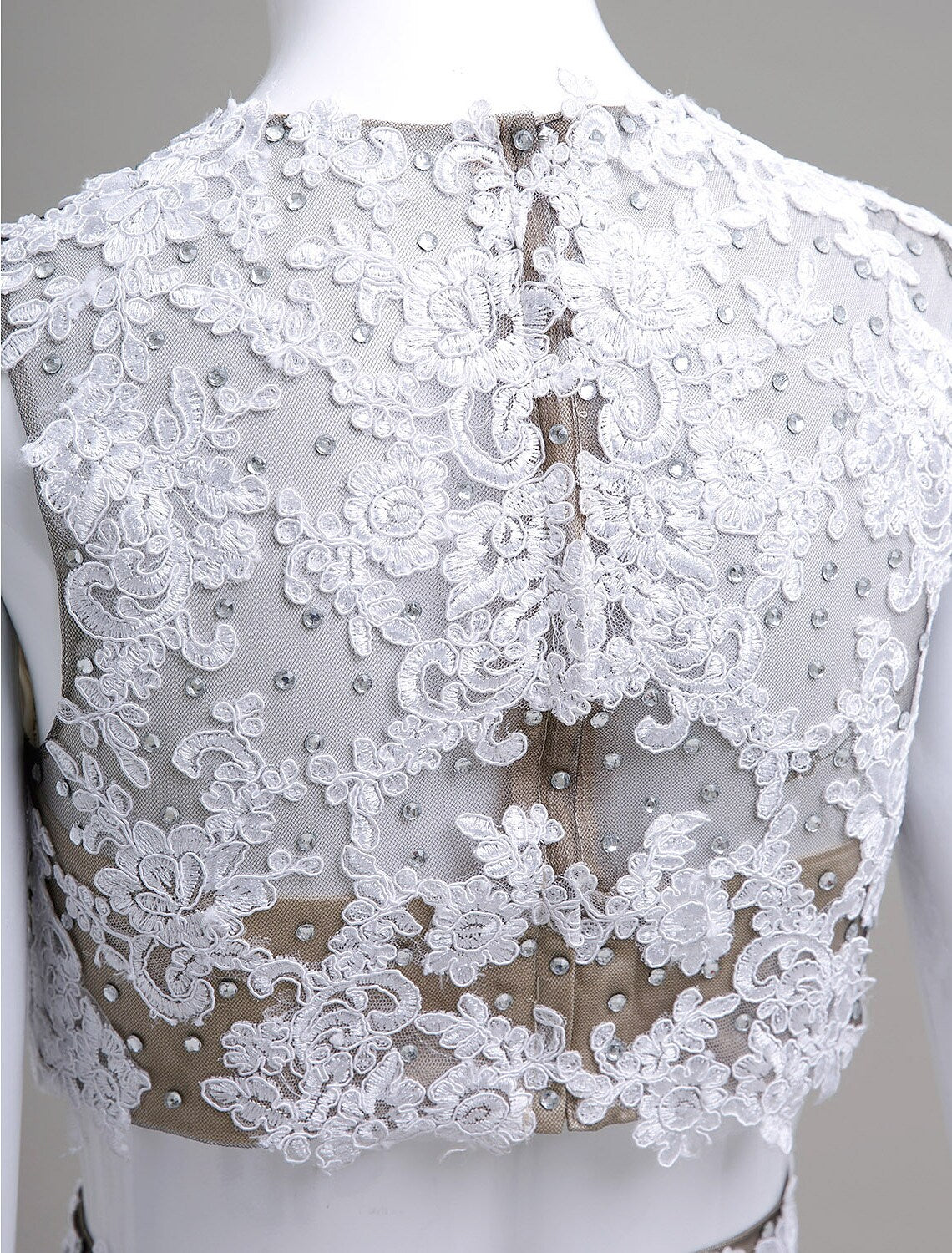 Vestido de dos piezas de talla grande para regreso a casa, corto, mini, sin mangas, con encaje sobre tul y cuentas - EE. UU. 2 / Reino Unido 6 / UE 32