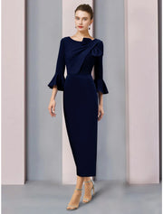 Vestido de Madre de la Novia de Corte A para Invitadas de Boda, Elegante, Escote Redondo, Largo hasta el Tobillo, Tejido Elástico, Manga 3/4 con Lazo(s), Fruncido, Color Sólido