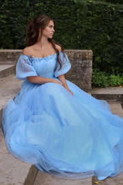 Vestidos de fiesta de tul con corte princesa y hombros descubiertos