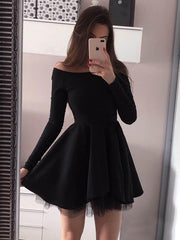 Vestidos cortos/mini de corte A/princesa, de crepé elástico, fruncidos, hombros descubiertos, mangas largas