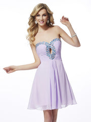 Vestidos de fiesta cortos de gasa con escote corazón, sin mangas y con cuentas, corte A/princesa