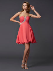 Vestidos de fiesta cortos de gasa con escote corazón, sin mangas y con cuentas, corte A/princesa