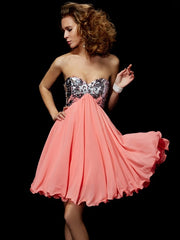 Vestidos de fiesta cortos de gasa con escote corazón, sin mangas y con cuentas, corte A/princesa