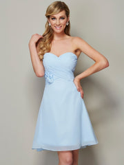 Vestidos de fiesta cortos de gasa con corte princesa, escote corazón, sin mangas, hechos a mano, con flores
