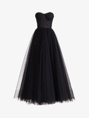 Vestido de fiesta de tul con escote en forma de corazón y abertura