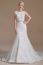 Vestidos de novia de tul con apliques de cola de sirena y cinturón