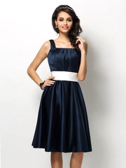 Vestidos de dama de honor cortos de satén sin mangas con corte tubo/columna y faja cuadrada/cinta/cinturón