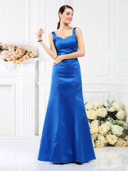 Vestidos de dama de honor largos de satén sin mangas con tirantes tipo tubo/columna