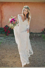 Vestidos de novia largos de encaje con mangas largas y escote en V sencillos y apliques