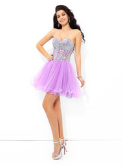 Vestidos de cóctel cortos de red, sin mangas, con lentejuelas y escote corazón, corte A/princesa