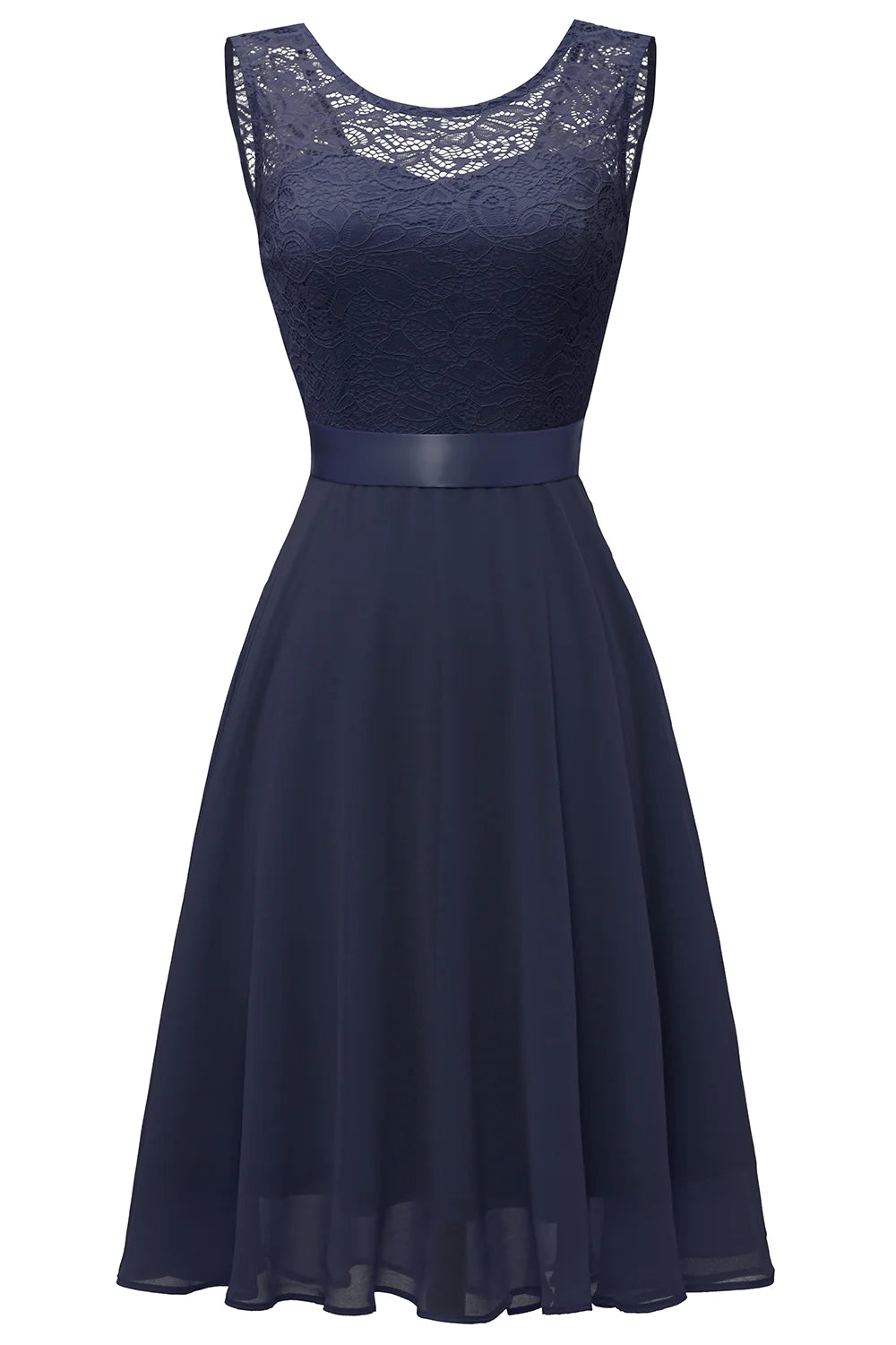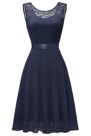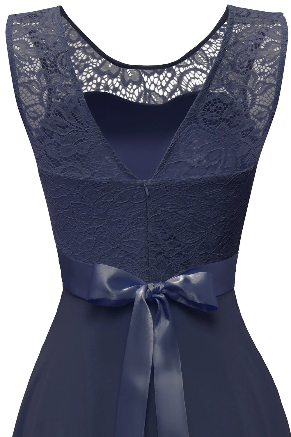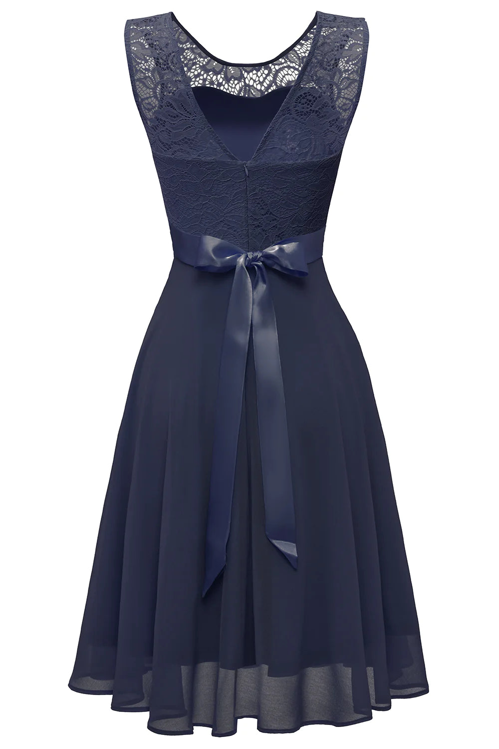 Vestido de encaje con cuello redondo y espalda abierta en tono ruborizado - Marina de guerra / EE. UU. 2 / Reino Unido 6 / UE 32