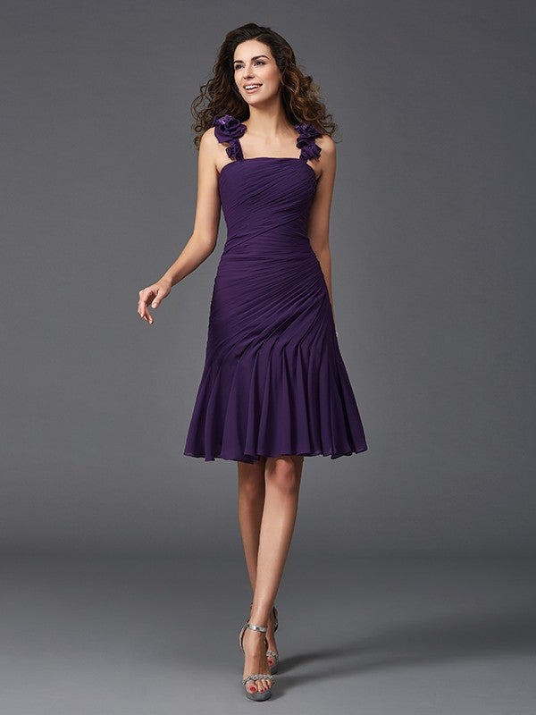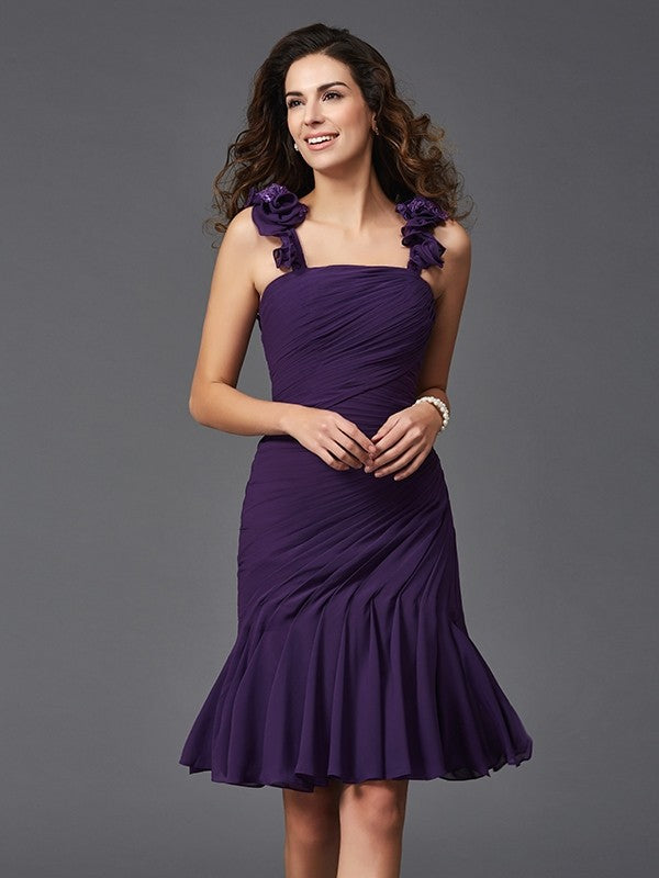 Vestidos de cóctel cortos de gasa con tirantes finos, fruncidos y sin mangas